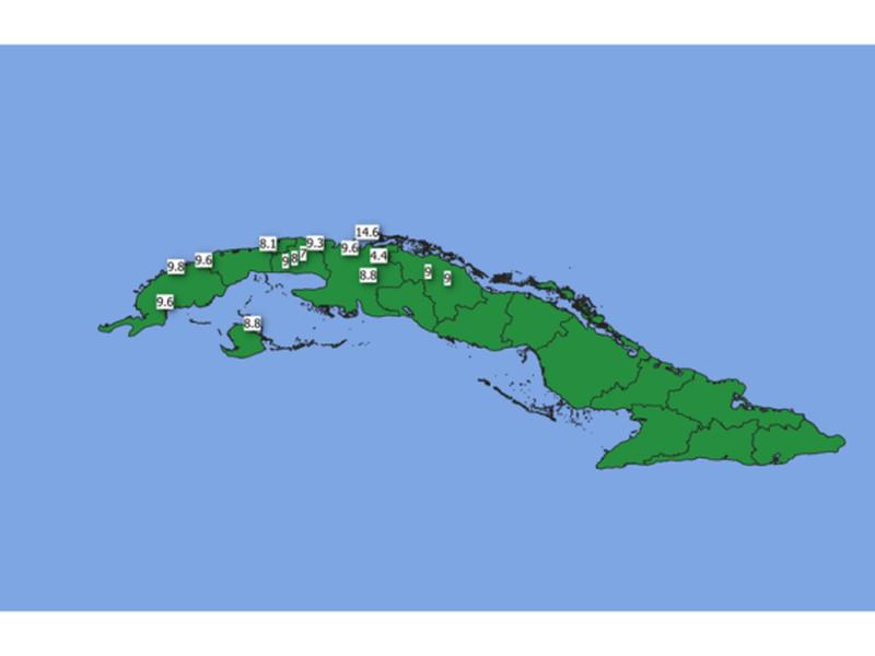 Estos valores corresponden a la temperatura reportada por la estación de Varadero (Matanzas) que durante los tres días reportó mínimas por debajo de su valor histórico para este mes, que databa de 17 de febrero de 2013 con 14.9 grados Celsius, el más bajo fue el 3 de febrero con 14.5 ºC.