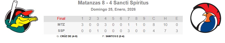 La tanda espirituana tampoco mostró su mayor potencial, al conectar apenas siete imparables, con el mayor aporte para el designado Frederich Cepeda, que con un triple con bases llenas en el séptimo contribuyó a maquillar la pizarra.