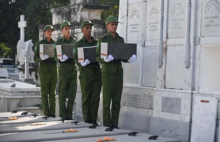 Con la participación de Miguel Díaz-Canel Bermúdez, Primer Secretario del Comité Central del Partido Comunista de Cuba y Presidente de la República, combatientes y pueblo acompañaron, en esta capital, la ceremonia militar de inhumación de cuatro de los 32 combatientes caídos en Venezuela.