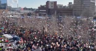 Multitud marcha en el centro de Minneapolis