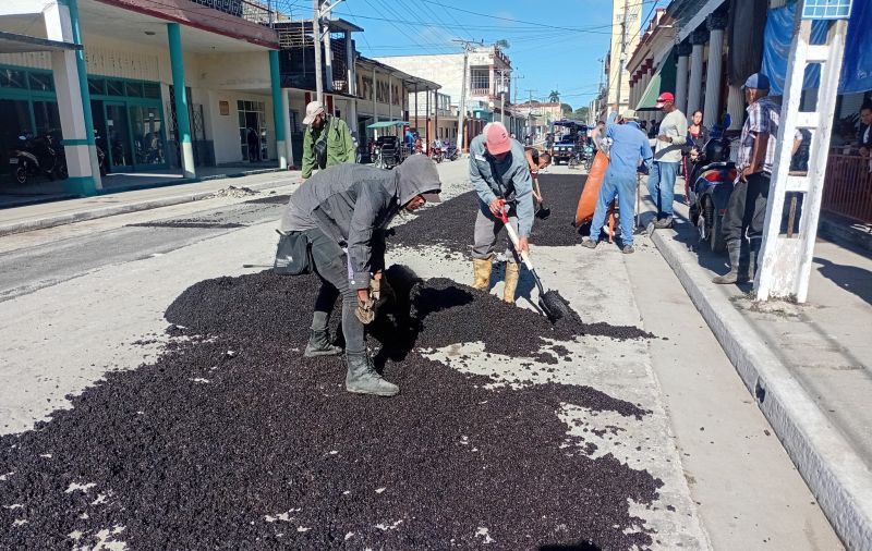 En Cabaiguán se ejecutan acciones de asfalto en las principales arterias de la ciudad, sobre todo en las vías por donde circulan los Ecomóviles, que desde el 20 de noviembre comezaron a prestar servicio en este territorio