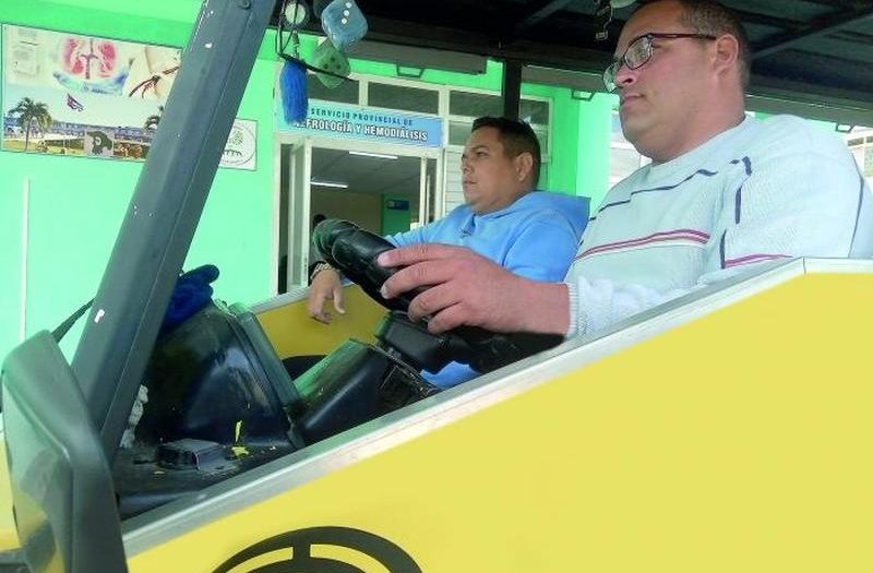 Procedente de Fomento, el auto de la agencia Taxis Cuba se detiene frente al vestíbulo de la sala concebida para los casos de nefrología y hemodiálisis. De inmediato, un hombre aparece con una silla de ruedas. Al parecer ha notado que la paciente viene afectada.
