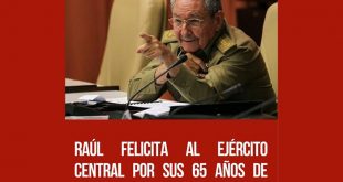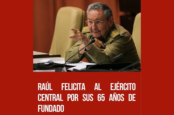 El General de Ejército Raúl Castro Ruz, líder de la Revolución Cubana, felicitó hoy en una misiva al Ejército Oriental en ocasión del aniversario 65 de su fundación, ocurrida el 21 de abril de 1961 tras la victoria en Playa Girón.