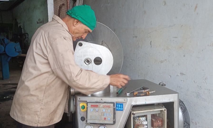 “También estoy recuperando una embutidora RM-3 de procedencia española, que lleva años en desuso y estaba propuesta a baja por deterioro total. Fue entonces cuando me di a la tarea de rescatarla, ya que no estamos en condiciones de importar una máquina nueva para la línea de minidosis. Desde hace días venimos diseñando las partes y piezas dañadas con la intención de ponerla a funcionar. Con este trabajo podemos ahorrar divisa al país, pues un equipo similar anda por los 85 000 dólares en el mercado internacional”, aclara El guajiro