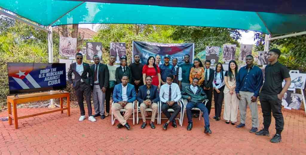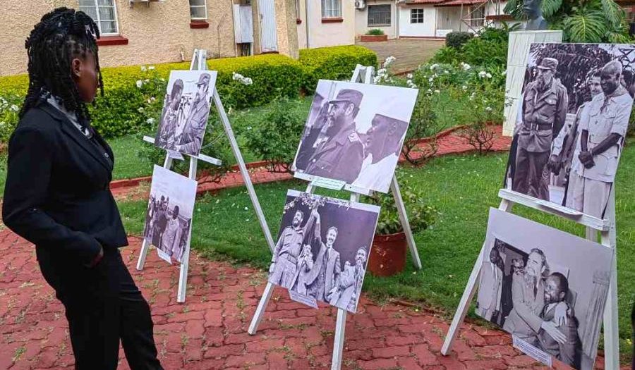 Integrantes del Movimiento Foro Panafricano de la Juventud de Zimbabwe apreciaron hoy una muestra de la vida y obra del líder histórico de la Revolución cubana, Fidel Castro, expuesta en la Embajada de la nación caribeña en Harare.