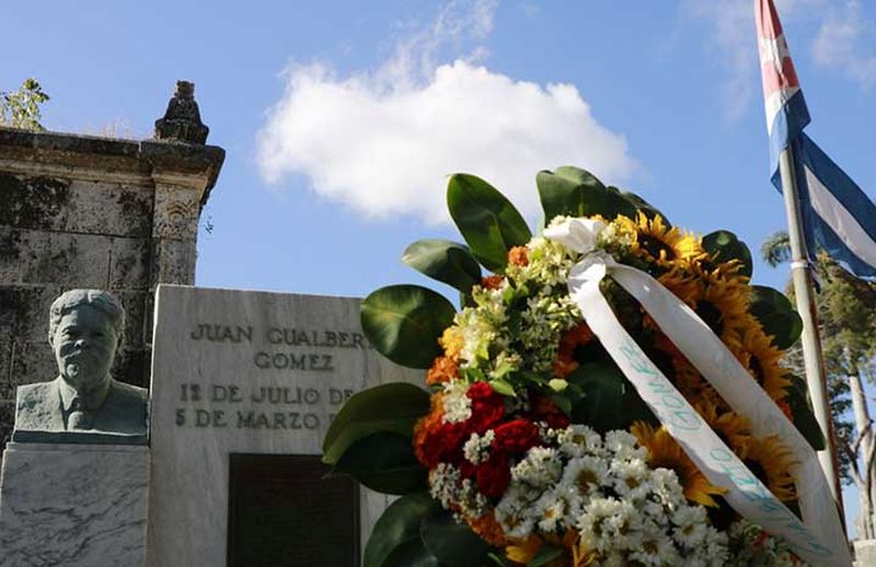 En la necrópolis de Colón, de La Habana, frente a la tumba que guarda los restos de Juan Gualberto Gómez, el joven estudiante que también ejerce en la redacción cultural del periódico Granma, dijo que constituye un honor disertar en el acto que dió inicio a la jornada por el Día de la Prensa Cubana.