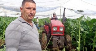 «En estos momentos estoy metido de a lleno en mi vega número 25 y puedo decirte que cada vez me enamoro más del tabaco, aun cuando jamás he fumado. Lleva labores muy exigentes, hay que hacerle las cosas a tiempo, sobre todo al tapado, pero es muy agradecido y te lo recompensa con resultados como el rendimiento agrícola que estoy logrando, de 1,4 toneladas por hectárea, y el 70 por ciento de capa para exportación».