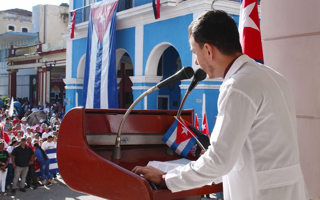 Aramís Valdés, joven médico, aseguró que su generación tiene que conocer la historia y comprender la importancia de esta epopeya. Por su parte, Ekaterina Gowen Dickinson, miembro del Comité Central del Partido y secretaria general de la Central de Trabajadores de Cuba en Sancti Spíritus, llamó a defender la patria en todas las trincheras y celebrar el Primero de Mayo con la austeridad de estos estos tiempos, pero con convicción.