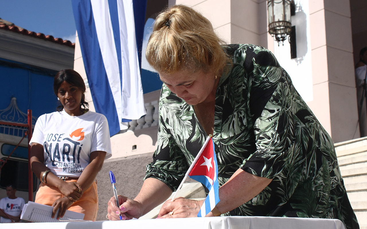 Al finalizar, el pueblo espirituano concentrado frente a la otrora Sociedad El Progreso se sumó al movimiento «Mi firma por la Patria».
