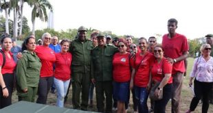 Esteban Lazo Hernández, presidente de la Asamblea Nacional del Poder Popular y del Consejo de Estado, participó hoy en las actividades por el Día Nacional de la Defensa, acompañado por autoridades del territorio de la capital, la ministra de Justicia Rosabel Gamón, y jóvenes representantes del pueblo.