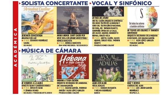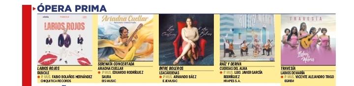 El soporte, que incluye cinco melodías, compite en los apartados de Música de Cámara, Ópera Prima y Notas Musicológicas. Este último un verdadero asombro y atrevimiento de García Rodríguez por compartir nominación con firmas reconocidas a nivel de país.
