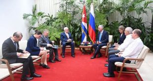 Es un placer recibirlo en Cuba. Aprovechamos esta ocasión para enviarle un abrazo a nuestro querido amigo, el Presidente Vladimir Putin, afirmó el mandatario en sus palabras iniciales del encuentro realizado en el Palacio de la Revolución.