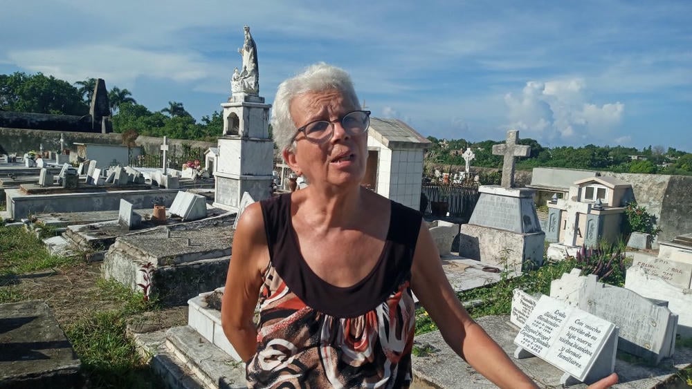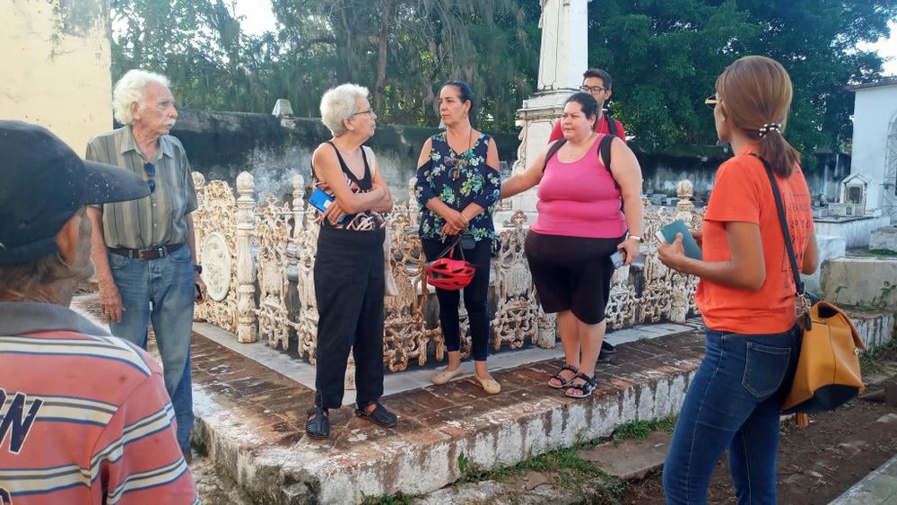 “En otro cuadrante, a la izquierda de la entrada, tenemos otra muestra de la historia que ha vivido la ciudad, la tumba de Berta Machado, de la familia de Gerardo Machado. Esta mujer falleció en 1930, pero cuando cae el dictador, en 1933, el pueblo se lanza para las calles a acabar con toda la memoria de esa familia. Todavía los impactos de las balas están ahí”.