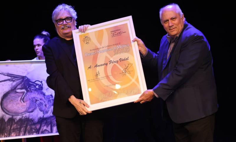 En una emotiva ceremonia, al cantautor Amaury Pérez Vidal le fue entregado hoy el Premio Nacional de Música 2025, reconocimiento a su amplia trayectoria como compositor, intérprete y figura esencial de la cultura cubana.