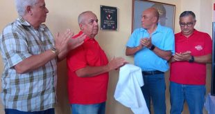 La placa fue develada en la sede de la dirección del cárnico espirituano con la presencia de Ramón Aguilar Betancourt, presidente de la Comisión Agroalimentaria de la Asamblea Nacional del Poder Popular; Alberto López Díaz, ministro del sector, y Jorge Luis Fajardo, secretario general del SNTIAP.