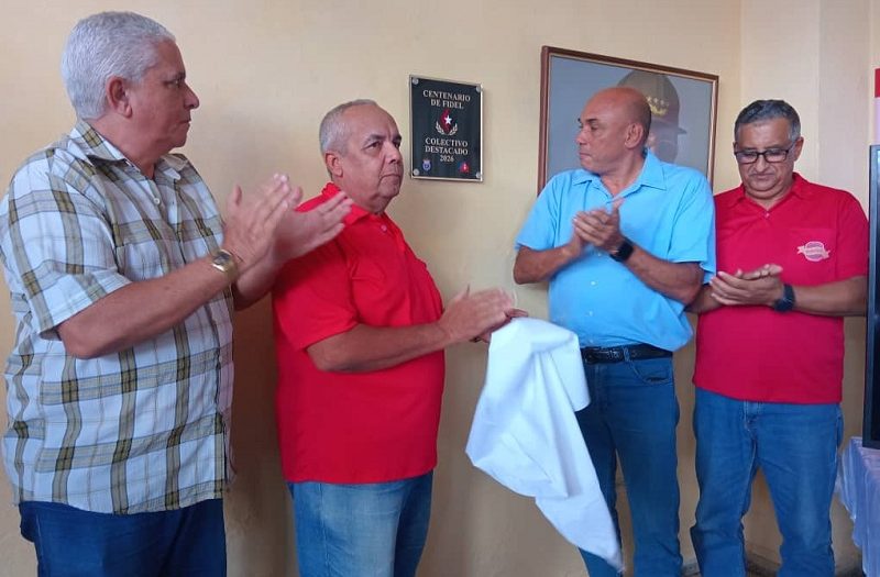 La Empresa Cárnica de Sancti Spíritus recibió este sábado la Placa Conmemorativa por el Centenario del Comandante en Jefe Fidel Castro. La distinción, instituida por el secretariado del Sindicato Nacional de Trabajadores de la Industria Alimentaria y la Pesca (SNTIAP), de conjunto con el ministerio del ramo, tiene como objetivo reconocer a colectivos laborales del sector que se hayan destacado durante el año 2025 en el cumplimiento de los objetivos de sus entidades y en el trabajo sindical.