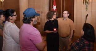 Fernando González Llort, presidente del ICAP, entregó el reconocimiento en cordial encuentro en el que Claudia de la Cruz, directora ejecutiva de la agrupación, manifestó agradecimiento afirmando que en este mundo en crisis “la solidaridad es el antídoto contra el imperialismo”.