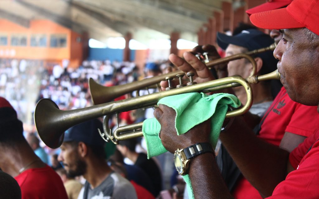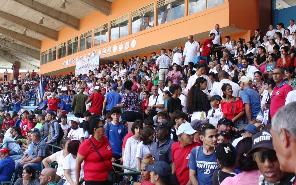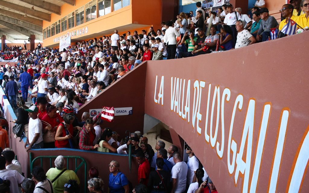 Banderas, carteles, congas y muchas otras iniciativas llenaron de algarabía los palcos, pasillos y gradas del «Huelga», donde estuvieron presentes  las máximas autoridades del Partido, del Gobierno y la Central de Trabajadores de Cuba (CTC) en la provincia.
