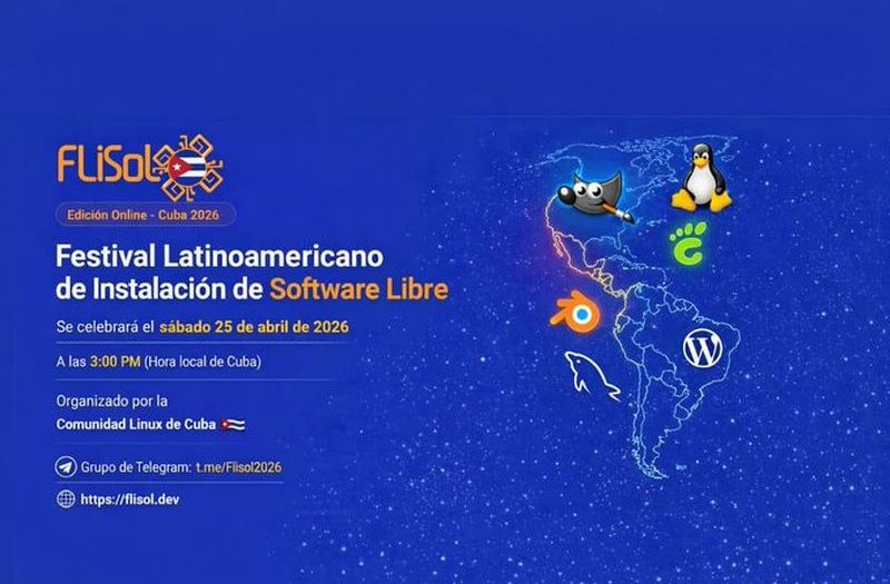 La comunidad Linux de Cuba invita a los apasionados de la tecnología a la vigesimosegunda edición del Festival Latinoamericano del Software Libre (Flisol) 2026; que se llevará a cabo este 25 de abril en modalidad online a través del grupo de Telegram y con transmisión en vivo en el canal de YouTube de la citada comunidad.