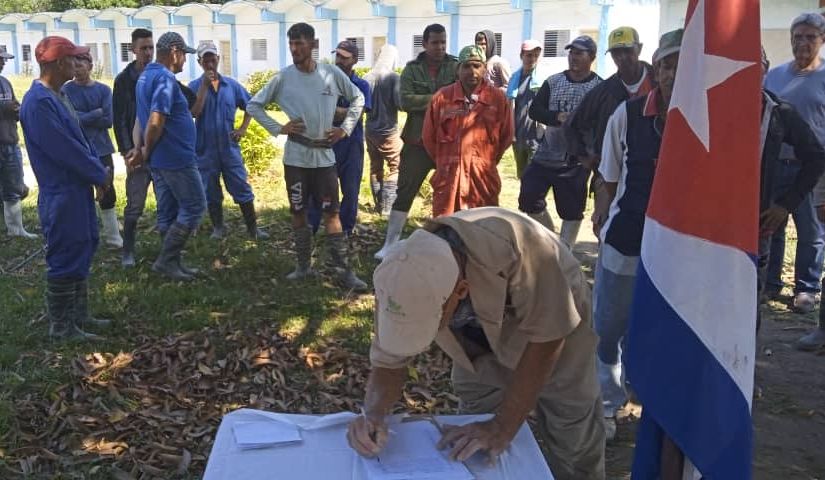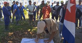 Los trabajadores de la mipyme Construlemuel hicieron una parada en sus labores constructivas para ratificar su compromiso de defender la soberanía y la independencia, luchar por la unidad del pueblo cubano y la paz en la región, en medio de la política agresiva del gobierno de Estados Unidos hacia la isla.