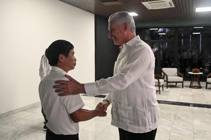 El compañero Nguyen Van Quang agradeció al Presidente Díaz-Canel Bermúdez por el recibimiento; le comentó que esta es una visita que cumple con la decisión de la dirección de su país de seguir apoyando a la hermana Cuba.