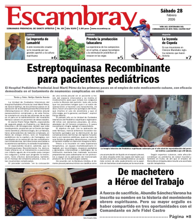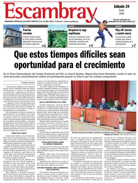 Descarga los PDF de las últimas ediciones impresas de Escambray, semanario con circulación los sábados en toda la provincia de Sancti Spíritus, Cuba.