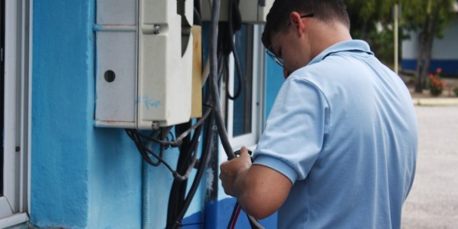 Desde este jueves la Empresa de Recuperación de Materias Primas de Sancti Spíritus mantiene con electricidad un gabinete de la telefonía fija en el reparto de Colón, en la cabecera provincial »