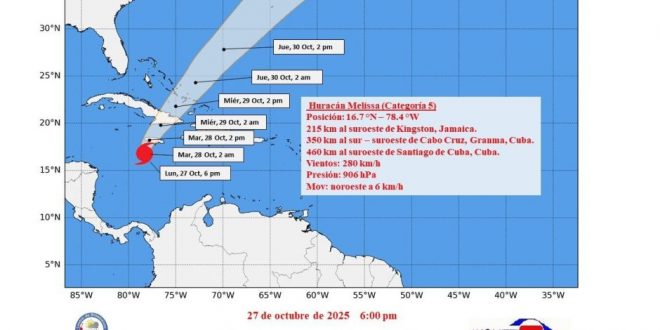 Durante su trayectoria el huracán Melissa experimentará fluctuaciones en su intensidad, no obstante, se mantendrá como un huracán de gran intensidad a su paso por Jamaica y Cuba »